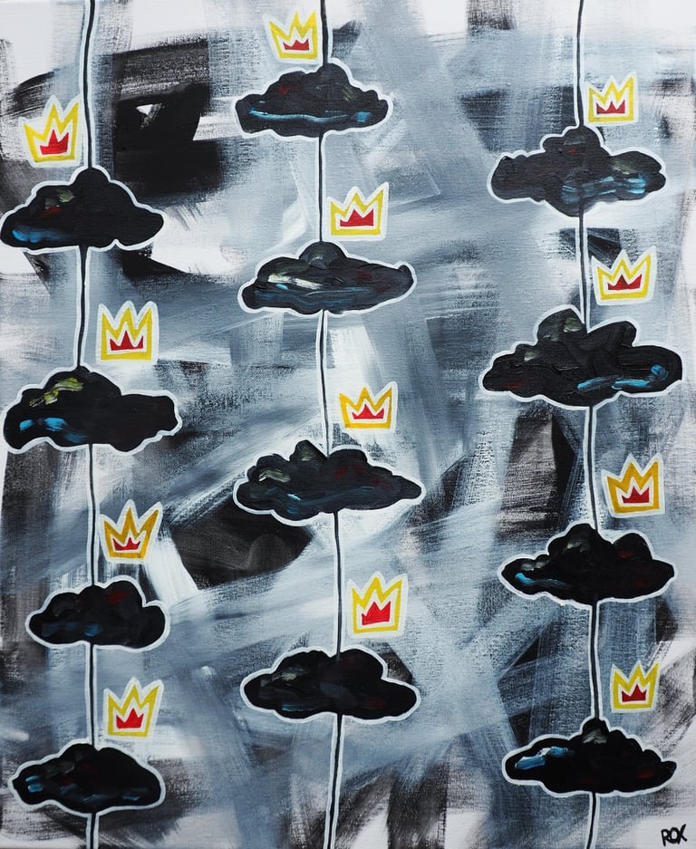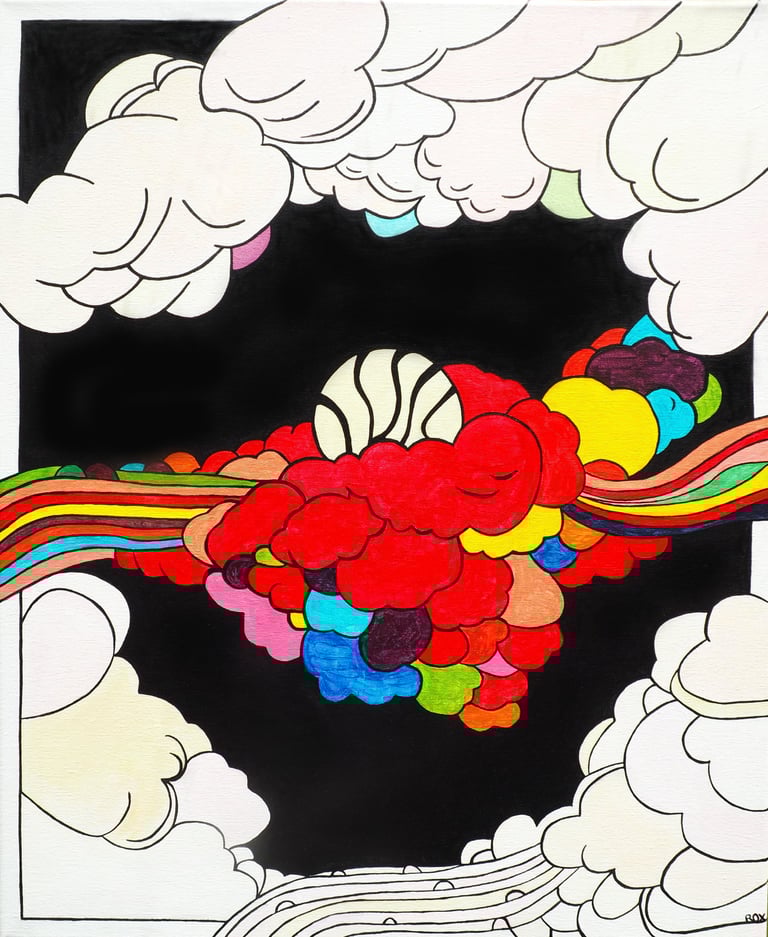 Suite à la demande du client, la toile a été créée de manière à représenter un univers aérien, de légèreté, sensation ressentie lors de la dégustation de cette bière IPA.